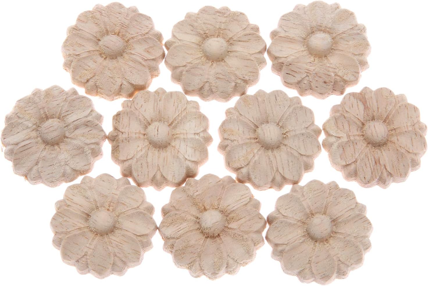 10-Pack Wood Little Onlay Appliques, Unpainted Round Flower Carving Craft Decals for Home Chests Cabinet Door Cupboard Dresser Bed Wall Pew Wardrobe Furniture Decor (Dia-3cm/1.18″)