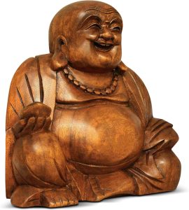 Buddha Statue Solid Wood Carved Happy Buddha Sculpture Laughing Buddha