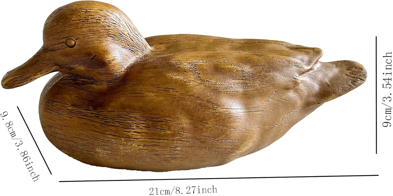 Duck Statue Home Decor Knick Knacks Duck Sculpture Hand Carved Shelf Decor for Home, Office Desk Cute Animal Figurine Unique Gift for Holidays Housewarming (Brown)